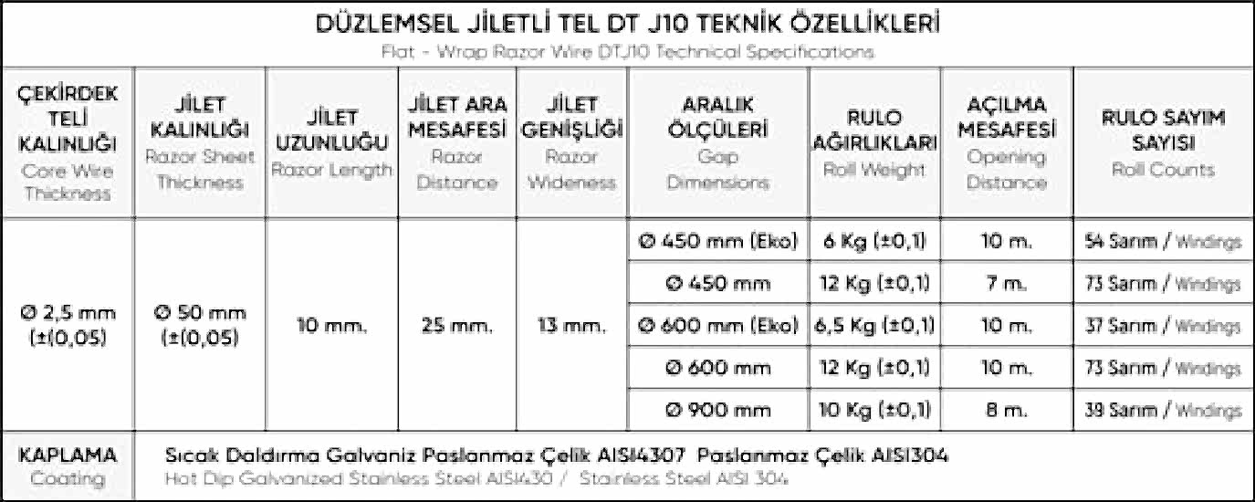 Düzlemsel Jiletli Tel